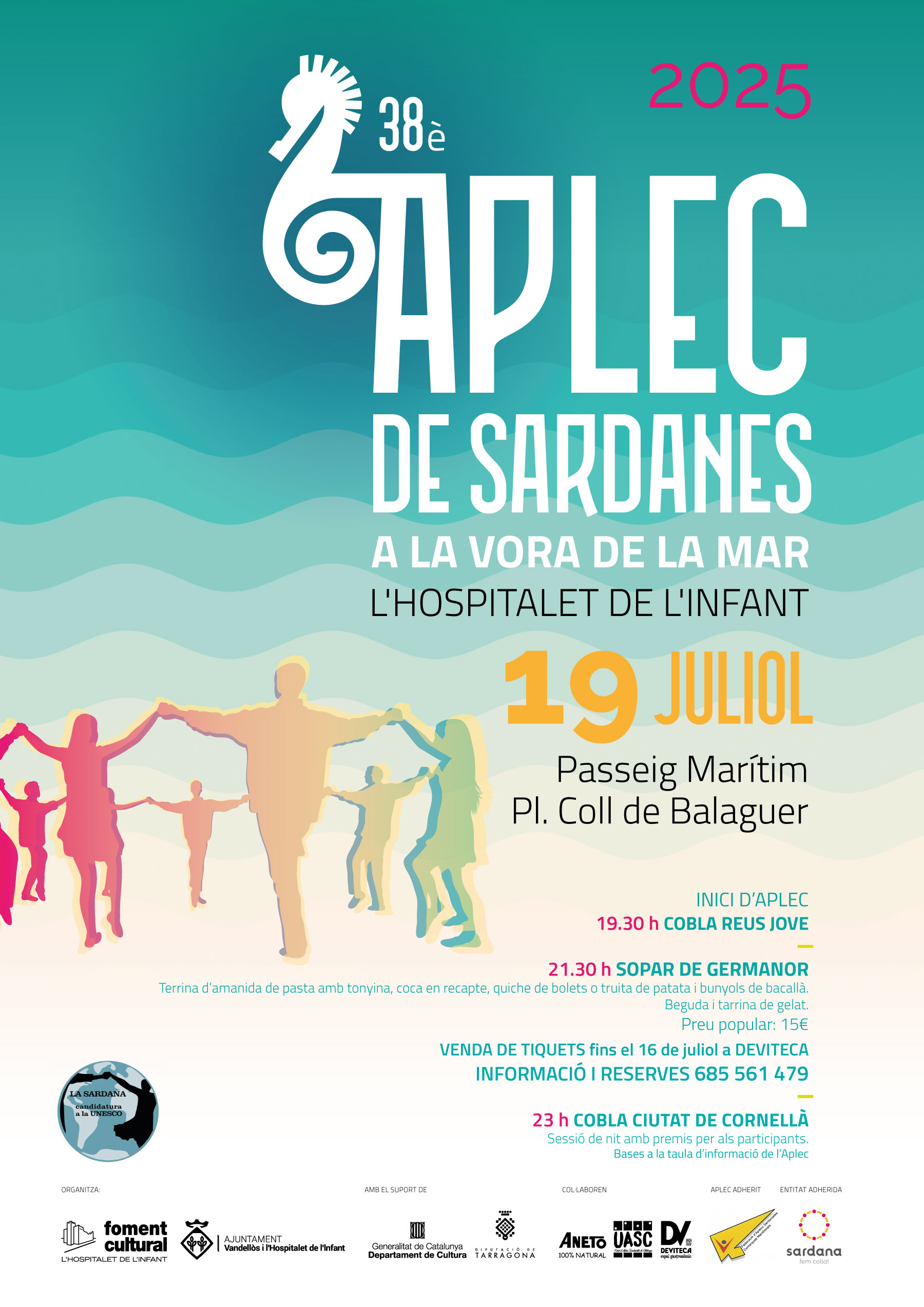 - 38è Aplec de sardanes a la vora de la mar / 19/07/2025, a partir de les 19:30 h, a l'Hospitalet de l'Infant