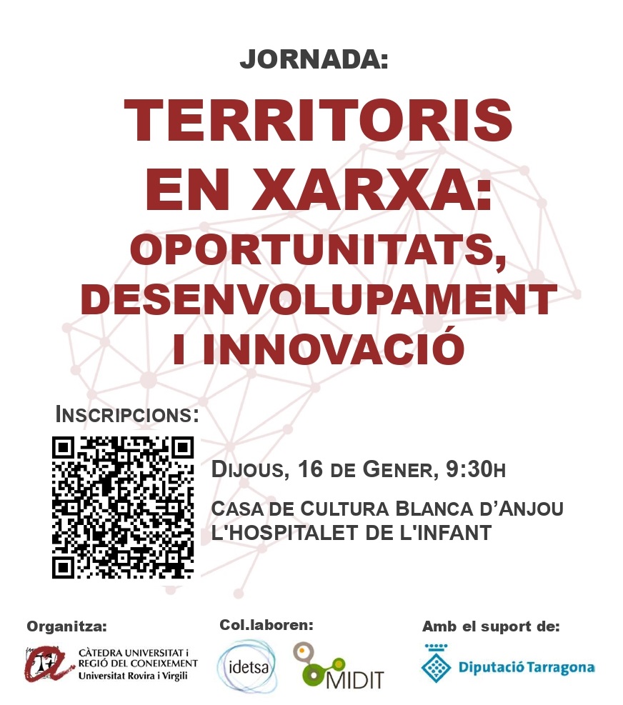 - Jornada: "Territoris en xarxa, oportunitats, desenvolupament i innovació" /16/01/2025/ a les 9:30 h a l'Hospitalet de l'Infant