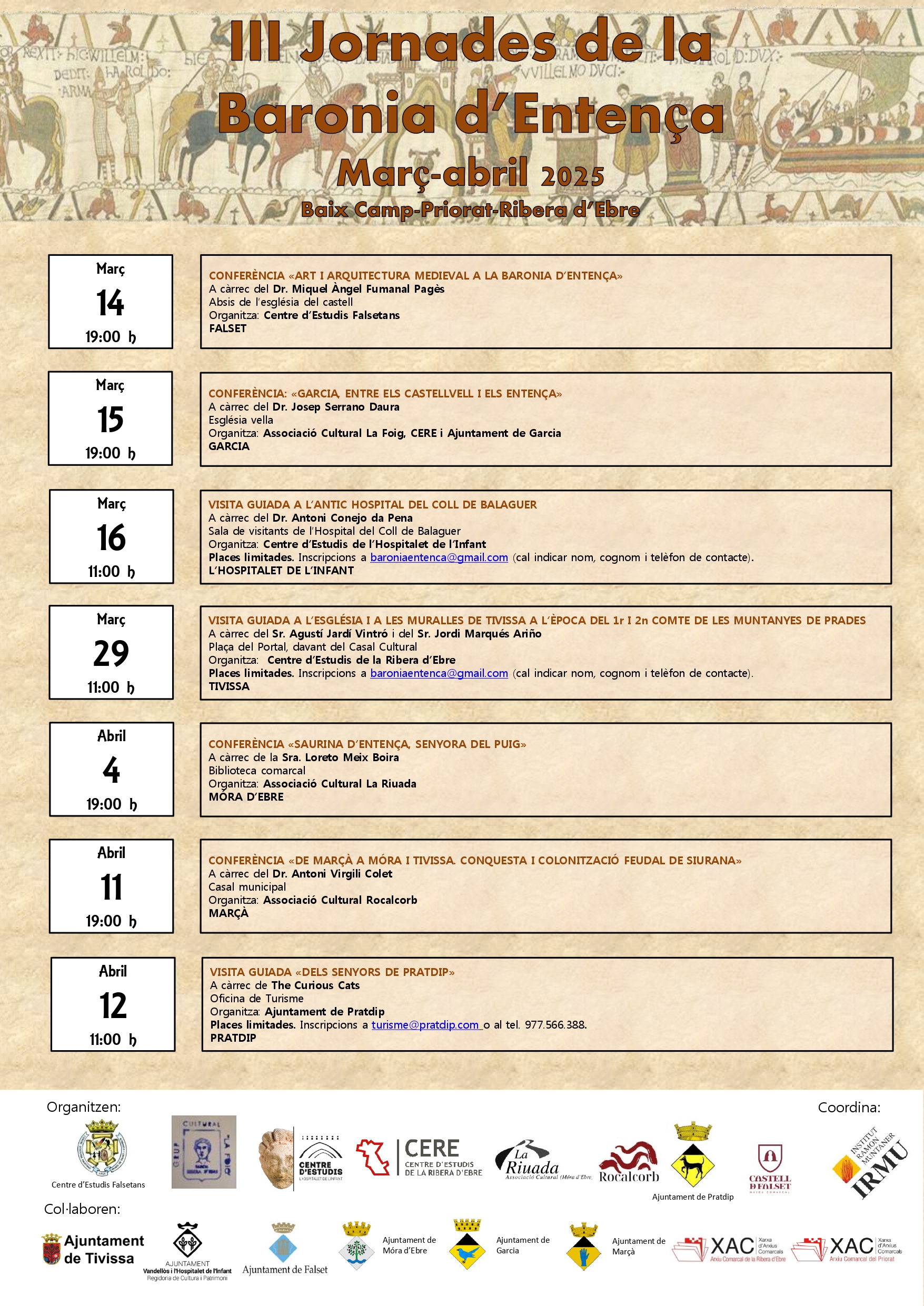 - Organitzada pel Centre d'Estudis de l'Hospitalet de l'Infant amb la col·laboració de l'Ajuntament en el marc de les III Jornades de la Baronia d'Entença