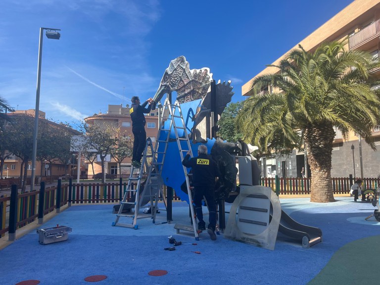 Una altra de les actuacions que ha dut a terme l’Ajuntament ha consistit en la substitució d’un dels jocs del parc infantil de la Plaça dels Pins, que s’havia deteriorat pel pas del temps. Concretament, ha substituït el tobogan, l’estructura de fusta i el gronxador per un model nou.