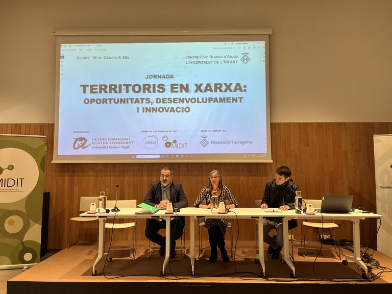 La jornada “Territoris en xarxa: oportunitats, desenvolupament i innovació”, organitzada ahir dijous 16 de gener per la Càtedra Universitat i Regió del Coneixement de la URV a l’Hospitalet de l’Infant, ha posat en valor la importància de les iniciatives en xarxa i l’extensió de la innovació i el desenvolupament per fer emergir oportunitats i talent fora de les àrees urbanes i metropolitanes. Celebrada a la Casa de Cultura Blanca d’Anjou, la jornada va comptar amb la col·laboració de l’empresa municipal Iniciatives de Desenvolupament Empresarial les Tàpies SA (IDETSA) i de la Mancomunitat d’Iniciatives pel Desenvolupament Integral del Territori de Vandellòs i l’Hospitalet de l’Infant, Tivissa i Pratdip (MIDIT), a més del suport de la Diputació de Tarragona.
