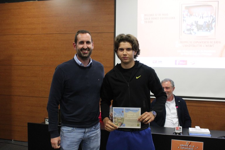- Jan Hernández i Gorka Ruiz van rebre el Premi al pòdcast més original, per “Canvi de generació” (sobre la importància d’escoltar la veu de persones que tenen més edat), de mans del regidor de Mitjans de comunicació, Ferran Conejo.